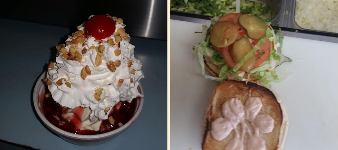 The menu features a range of options, from juicy cheeseburgers to hand-cut fries and delightful ice cream treats. Whether dining in or grabbing food to go, it offers a relaxed atmosphere that invites customers to enjoy hearty meals.